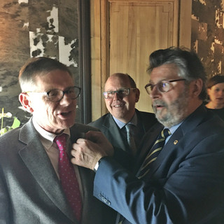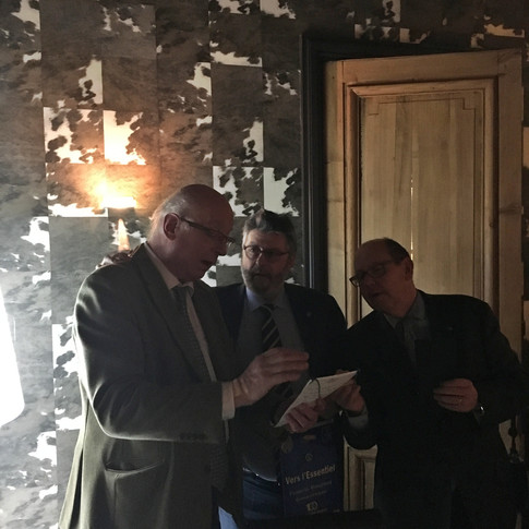 Voici les photos de l’échange des fanions entre notre Président et le Gouverneur, avec sur la deuxième photo, JP qui vient en aide au Président pour l’explication de nos couleurs …